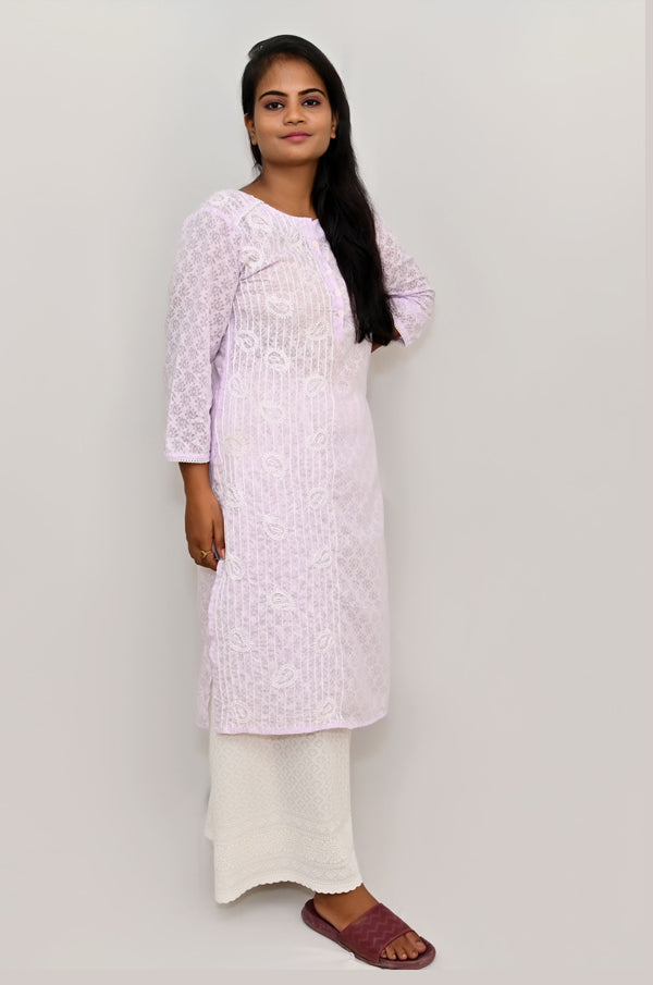 Craft : intricate chikankari embroidery with chain and ghaas patti work .