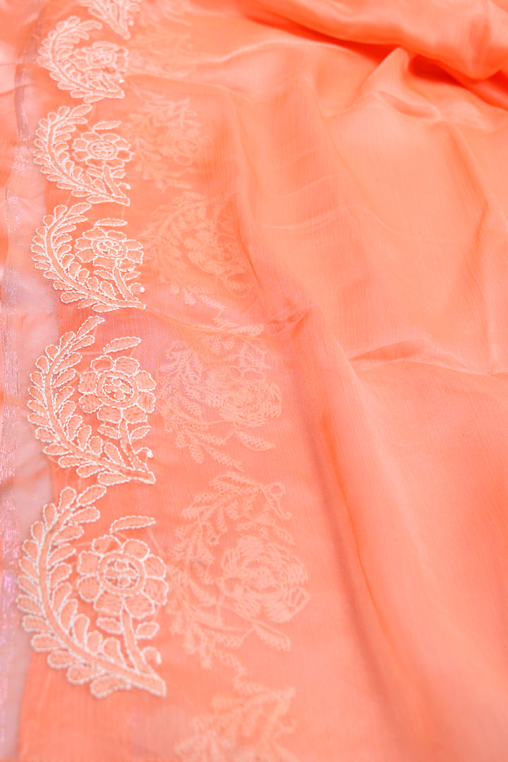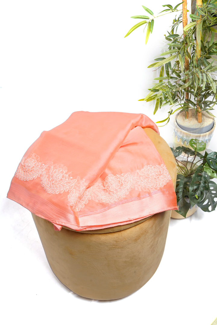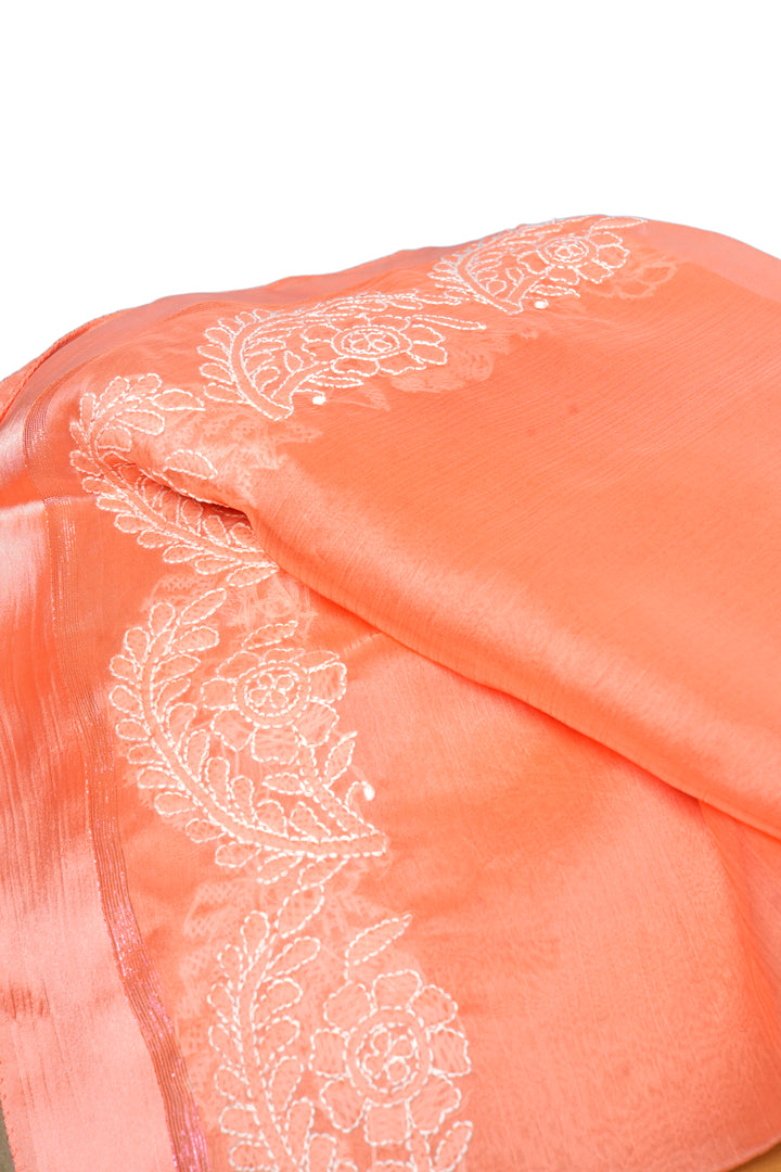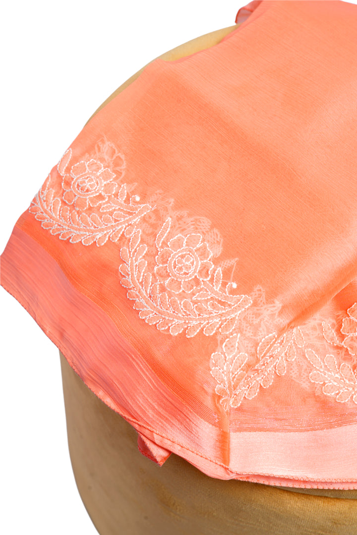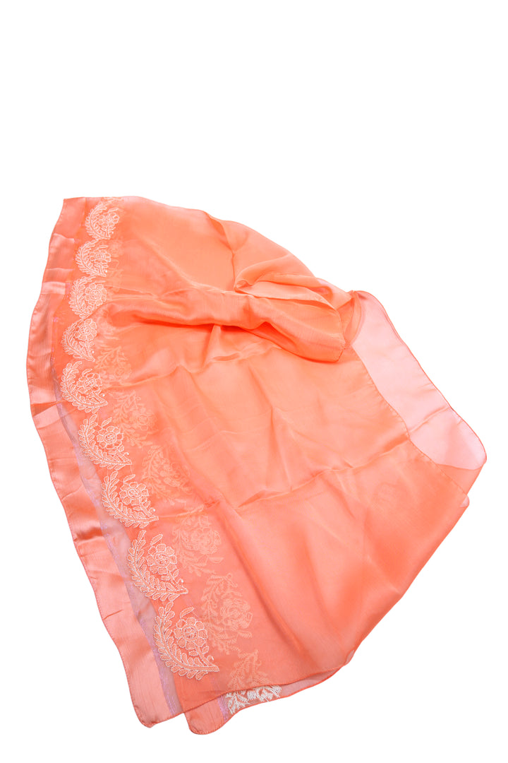 Elevate your look with this ethereal Peach Georgette satin Chikankari Stole. Handcrafted with