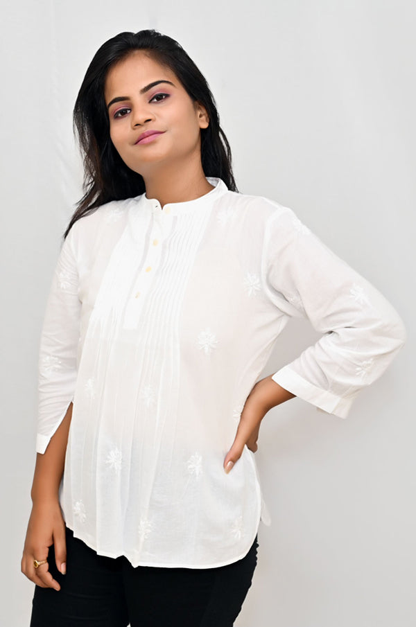 White cotton chikankari top with all over buttis